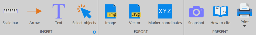 The Publish ribbon contains tools useful for creating figures for presentation or publication.