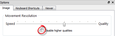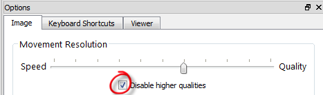 - Click Tools>Viewer Options to open the Options panel; the Image tab is displayed.