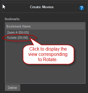 In the 3D window, click the Movie button to display the Movie tools (Timeline, Bookmarks, Save & Export).