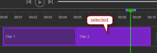 The timeline displays the sequence of clips. Each time you create a clip, it is added to the timeline.