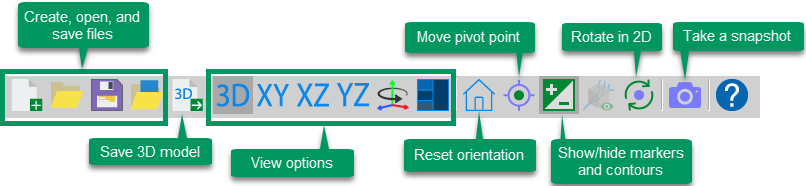 The 3D visualization window button bar includes many commonly used functions (some are repeated from the Main window).