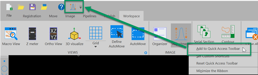 Click the 3D visualize button on the Registration, Image, or Workspace ribbon to open the 3D Visualization window.