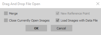 Different windows open, depending on whether you drop image or data files; indicate how you want to handle your files.