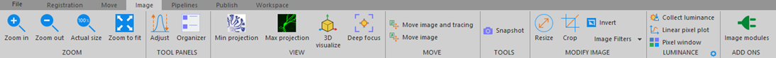 The Image ribbon includes tools for adjusting and organizing images, cell detection, illumination correction, and many other functions.