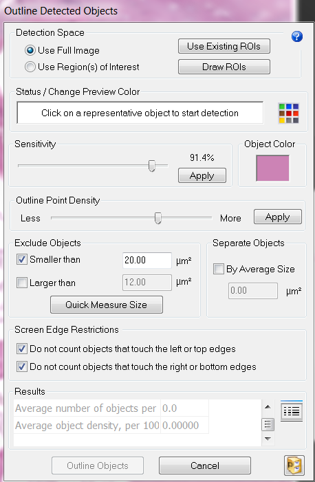 In the Outline Detected Objects window, select Use Full Image or Use Region(s) of Interest as the Detection Space.