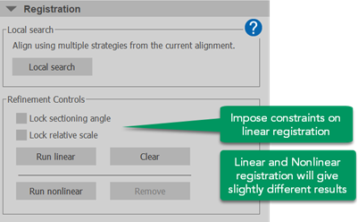 Lock sectioning angle: Check to hold the specimen angle constant while running a linear registration.