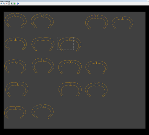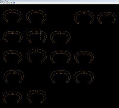 The Macro View window provides an aerial view of the entire tracing (with or without images). The view is a top-down perspective along the X and Y axes (as in the Main window). Open it by clicking the Macro View button on the Registration or Workspace ribbon. |