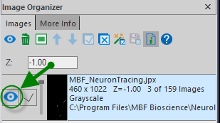 Click the Eye icon in the Image Organizer to show or hide your image in the 3D window.