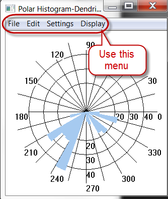 - The total length in a given bin is summed as a wedge with the same orientation as the line segments, and represented in the circular polar histogram graph.
