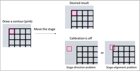 If the closed contour does not remain aligned with the grid, there is a problem with the calibration. In this case, repeat the calibration, and if you're still not able to verify calibration accuracy, contact our Technical Services staff for assistance.