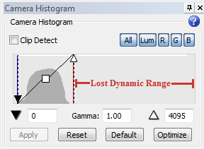 - The gain option boosts both signal and noise in the image and adjustments to the black and white point sliders limit the dynamic range.