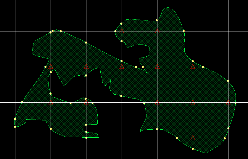 Mark each vertex (grid intersection) that falls within the region of interest.