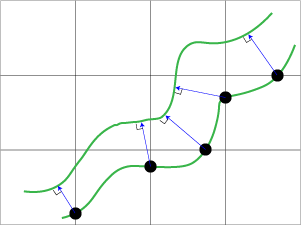 - Starting at a point where the grid and the membrane wall intersect (black circle in the figure), click and drag the mouse to the other membrane wall so that line-segment (blue line with arrow head in figure) and wall meet orthogonally.