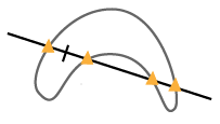 - Click to mark the intersections of the line and the particle boundaries. If the line intersects the particle more than once, mark all intersections. Tick marks are displayed at the selected intersections.