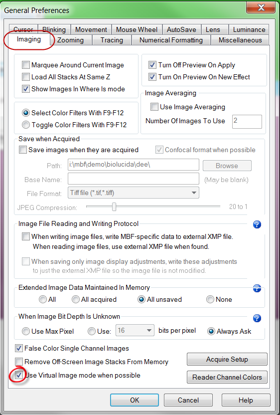 In virtual image mode, Stereo Investigator only loads the area of the image that you see displayed in the Tracing window.