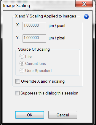 Scaling is a measure of how many microns a pixel represents. Scaling may be different for each axis and is automatically defined for the X and Y axes of each lens when you calibrate the system (Calibration overview). If you're working with an image stack, the Z scaling (also known as the Z step) is equal to the distance between images.