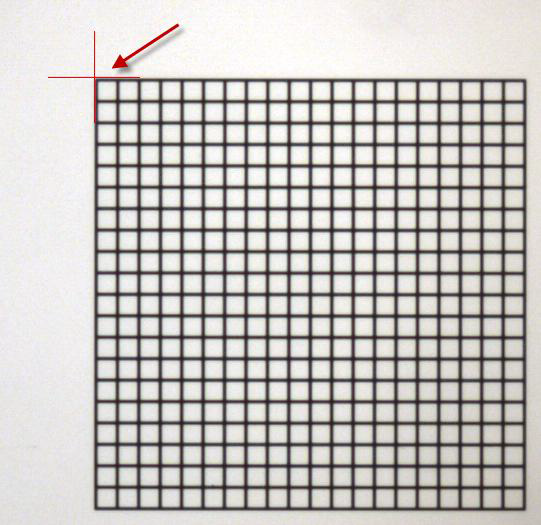 - Move the stage to display a corner of the small (25 µm) grid into the center of the screen.
