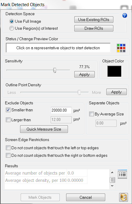 - In the Mark Detected Objects window, select Use Full Image or Use Region(s) of Interest under Detection Space.