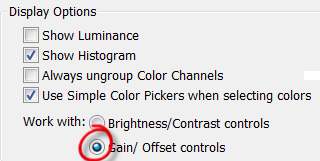 You have the option to display Gain and Offset instead of Brightness and Contrast: