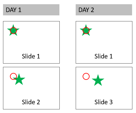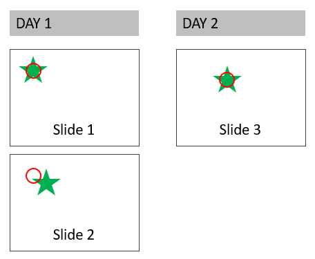 Let's use an example. You have a set of three slides; on Day 1, you generate tracing data for slides 1 and 2, and on Day 2, you generate data for slide 3.