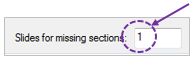 - In step 2 under Slides for missing sections, enter the number of slides containing replacement sections.