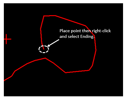 - Click to place a point near the point where the loop closes then right-click and select Ending.
