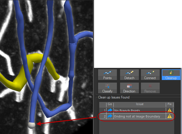 - Vessel fragment found: The vessel has two or less points: clicking Fix will delete the vessel.