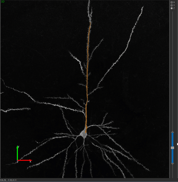 • To move along an axis, drag the slider for that axis OR click a slider and use the PageUp/PageDown keys to move one plane at a time (click to view a short demonstration).