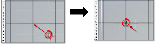 A white grid with dotted lines appears in the main software window. Align the white grid with the slide grid (black lines).