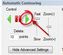 In the Control area, click the Forward arrow. The automatic contouring process starts.