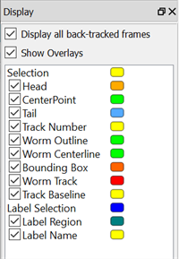 display all back-tracked frames: If you used back tracking (see Tracking Parameters in Tracking panel), and this checkbox is cleared WormLab software quickly processes through all the frames in the sequence without displaying frames that do not have any type of overlap or entanglement. This is much faster, but it causes a spike in CPU usage that may cause problems for older or less powerful computers. Check this checkbox to avoid the CPU-usage spike; WormLab software will display every frame in reverse sequence.